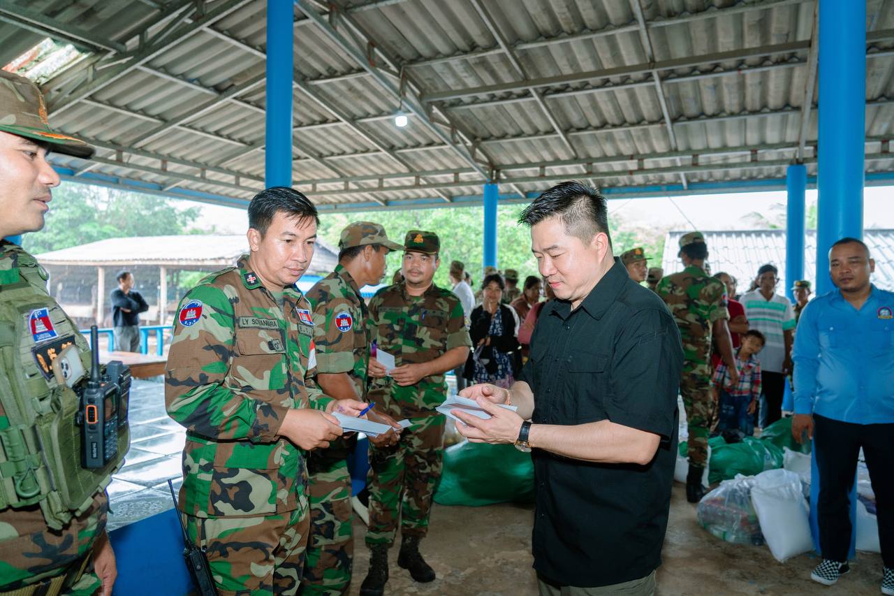 កាលពីថ្ងៃអាទិត្យ ៨កើត ខែភទ្របទ ឆ្នាំម្សាញ់ សប្តស័ក ពុទ្ធសករាជ ២៥៦៩ ត្រូវនឹងថ្ងៃទី៣១ ខែសីហា ឆ្នាំ២០២៥កន្លងមកនេះ លោកឧត្តមសេនីយ៍ត្រី ម៉េង ស្រ៊ុន មេបញ្ជាការ កងរាជអាវុធហត្ថខេត្តកំពង់ស្ពឺ បានបន្តដឹកនាំក្រុមការងារកងរាជអាវុធហត្ថ និងក្រុមការងារសហភាពសហព័ន្ធយុវជនកម្ពុជាខេត្តកំពង់ស្ពឺ ព្រមទាំងបងប្អូនសប្បុរសជនដែលមានទឹកចិត្តសប្បុរសធម៏ចំពោះជាតិមាតុភូមិ វីរៈកងទ័ពជួរមុខនិងប្រជាជន បានអញ្ជើញ ចុះសួរសុខទុក្ខ នាំយកនូវសំភារៈប្រើប្រាស់មួយចំនួន និងគ្រឿងឧបភោគបរិភោគ ព្រមទាំងថវិការមួយចំនួន ដើម្បីយកទៅចែកជួនដល់កម្លាំងដែលកំពុងឈរជើងនៅខ្សែត្រៀមជួរមុខដើម្បីការពារបូរណភាពទឹកដីនៅតាមបណ្តោយព្រំដែនកម្ពុជា-ថៃ យោធភូមិភាគទី៣ ក្នុងខេត្តកោះកុង។រួមមាន៖ នាយ-នាយនគរបាលរង នៃវរៈសេនាតូច827 (ក្នុងនោះដែរមានបងប្អូនប្រជាពលរដ្ឋ និងបងប្អូនក្រុមគ្រួសារជនភៀសសឹក សរុប56គ្រួសារ) និងនាយទាហាន-នាយទាហានរង ផ្នែកសឹករងស្រុកមណ្ឌលសីមា និងកម្លាំងអន្តរាគមន៍ការពារព្រំដែន(មានបងប្អូនប្រជាពលរដ្ឋ និងបងប្អូនក្រុមគ្រួសារជនភៀសសឹក សរុបចំនួន239គ្រួសារ) ព្រមទាំងនាយទាហាន-នាយទាហានរង នៃកម្លាំងវរៈសេនាតូច337ដែលប្រចាំការ ការពារព្រំដែន(មានបងប្អូនប្រជាពលរដ្ឋ និងបងប្អូនក្រុមគ្រួសារជនភៀសសឹក សរុបចំនួន324គ្រួសារ) ដោយសរុបជារួមមានបងប្អូនប្រជាពលរដ្ឋ និងបងប្អូនក្រុមគ្រួសារជនភៀសសឹក សរុបចំនួន619គ្រួសារ ដែលមកពី ភូមិចាំយាម ឃុំប៉ាក់ខ្លង ស្រុកមណ្ឌលសីមា ខេត្តកោះកុង។