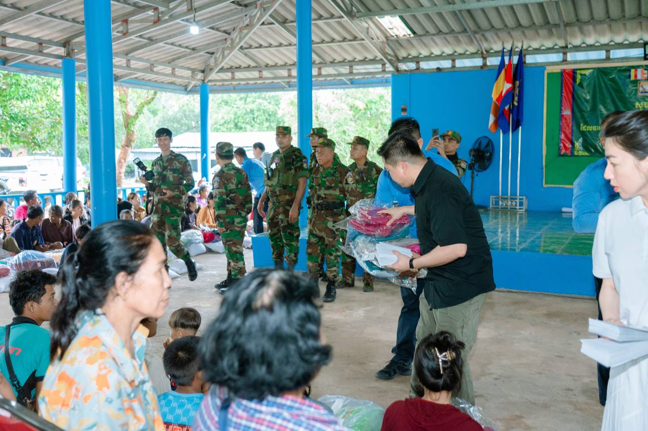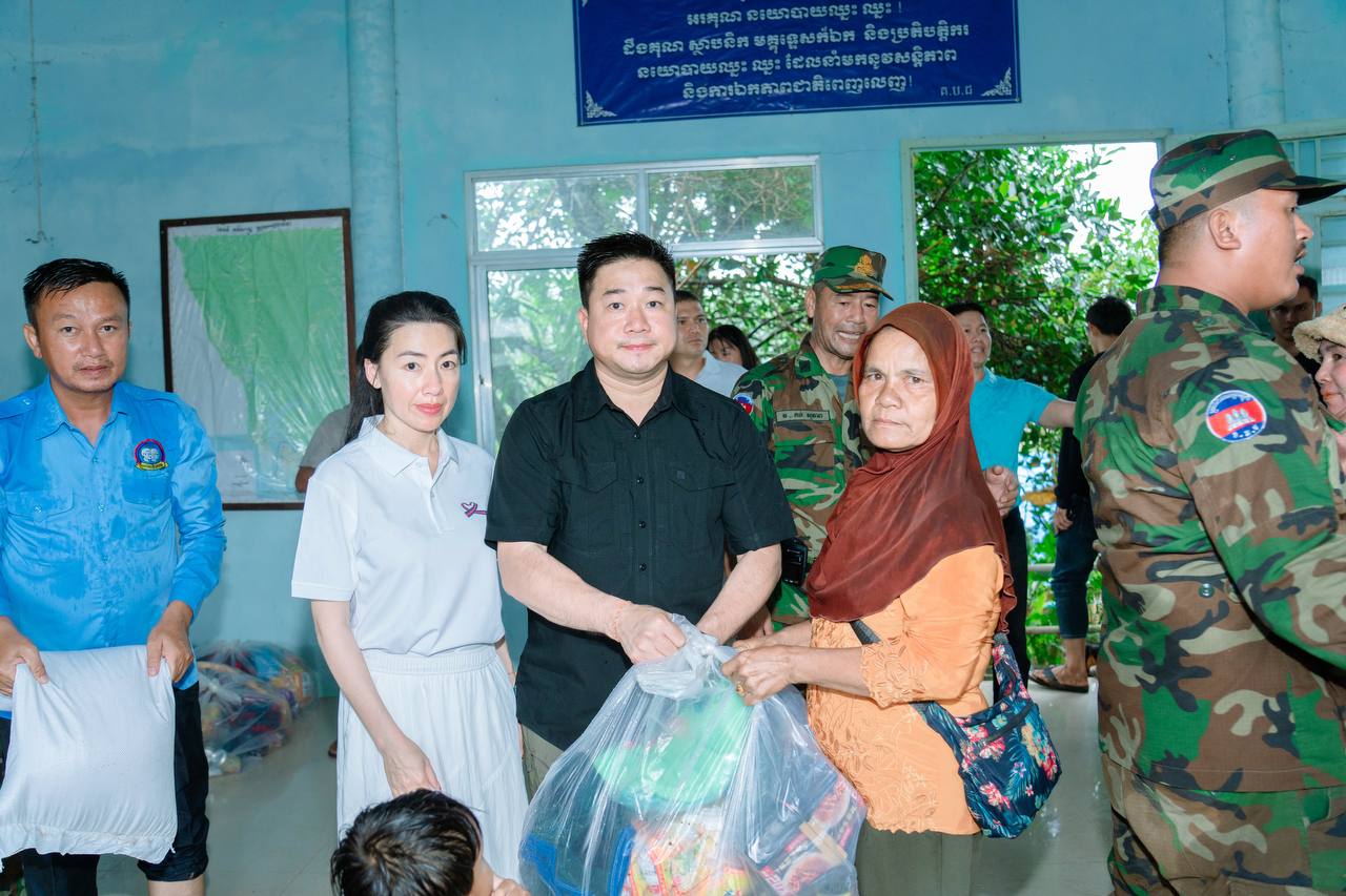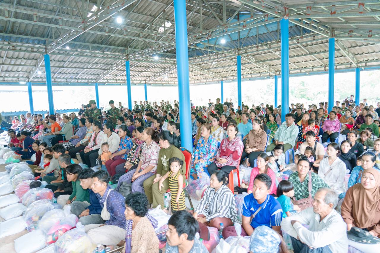 និងបងប្អូនប្រជាពលរដ្ឋ ព្រមទាំងបងប្អូនក្រុមគ្រួសារជនភៀសសឹក ចំនួន៦១៩គ្រួសារទៀត ដោយក្នុង១គ្រួសារទទួលបាននូវ៖អង្ករ ១បាវ,ទឹកបរិសុទ្ធ ៦ដប,មីខ្លាឃ្មុំ ២០កញ្ចប់,ទឹកផ្លែឈើ Era gold 5 កំប៉ុង,នំប្រៃ ១កញ្ចប់,ទឹកស៊ីអ៊ីវ ១យូរ,អំបិលម្រិច ១ខ្សែរ,ទឹកដោះគោ ២កញ្ចប់,បាយប្រអប់ ៤ប្រអប់,ស្ករ ១កញ្ចប់,ទឹកត្រី ១យូរ,ត្រី ខ ១យូរ,អំបិល ១កញ្ចប់,មុង ១,ភួយ ១,ថ្នាំពេទ្យមួយចំនួន,អាវរងារ ១,នំសូកូឡា សាំងវិច ១កេស,នឹងថវិកា ក្នុងម្នាក់ ២ម៉ឺនរៀលថែមទៀត។